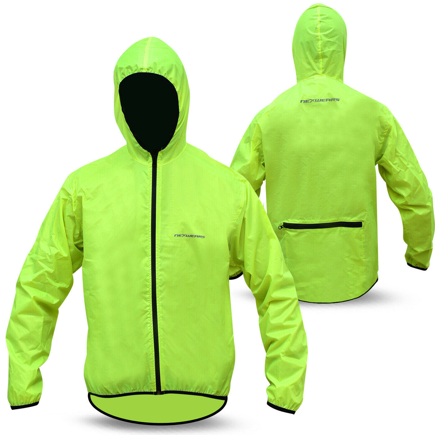 Mens Cycling Hooded Jacket High Visibility Waterproof Running Top Rain Coat